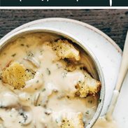 I’m all for the flour and cream but… if you need to dial back the fat, I second the idea of using potatoes. This recipe doesn’t call for a blender step, so you could try my instant potatoes trick – just add them slowly at the end (start with a 1/4 cup and give them time to cook a bit in the broth – don’t boil. If it’s not thick enough, add a bit more and repeat until you have the desired thickness/creaminess ). You absolutely don’t want it to taste like mashed potato soup so be careful! If added carefully they will thicken but not overwhelm the soup.